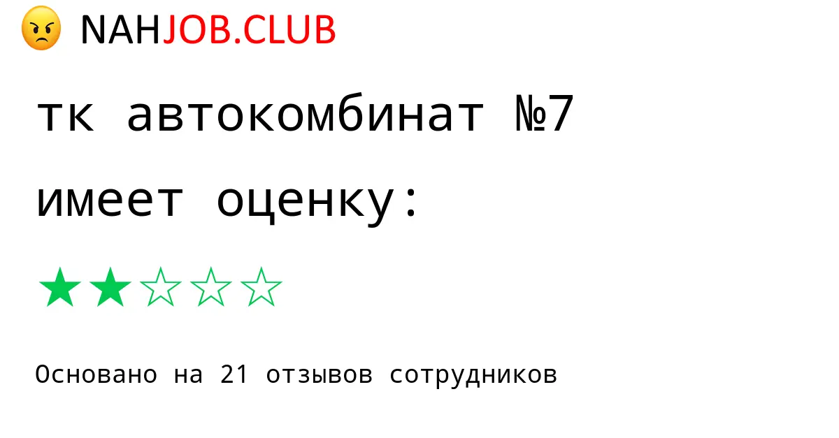 🔴 В базе Nahjob 3 отзыва и мнений бывших и действующих работников про ТК АВТОКОМБИНАТ №7 по городу Железнодорожный с рейтингом 1 из 5 . Это реальные отклики про зп, атмосферу, штрафы.