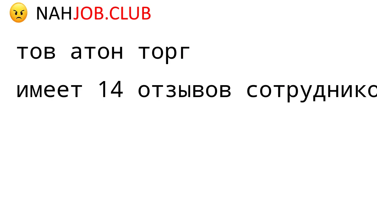 🔴 В базе Nahjob 14 отзывов и мнений бывших и действующих работников про ТОВ АТОН ТОРГ. Это реальные отклики про зп, атмосферу, штрафы.
