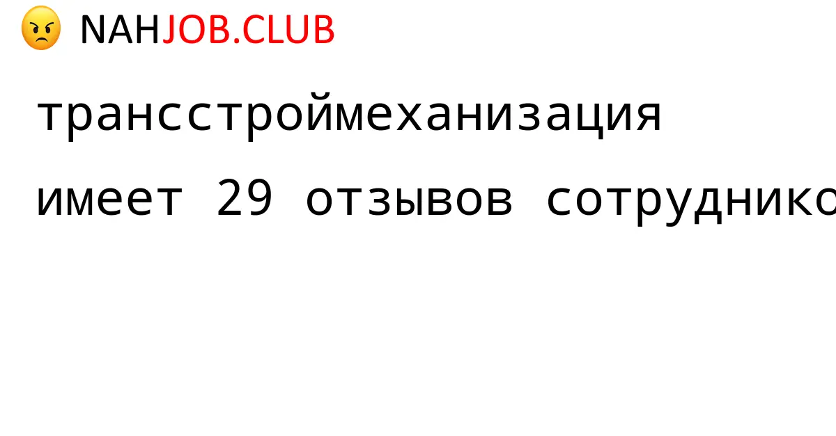🔴 Изучаете вакансию механик компании ТРАНССТРОЙМЕХАНИЗАЦИЯ? Почитайте 1 отзыв бывших сотрудников про работу по должности Механик в ТРАНССТРОЙМЕХАНИЗАЦИЯ