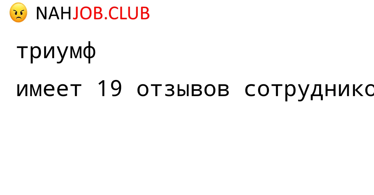 🔴 Мы собрали 9 отзывов бывших сотрудников про ТРИУМФ по городу Москва . Это данные изнутри про зарплату, коллектив, штрафы.