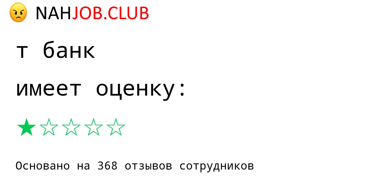 🔴 Мы собрали 365 отзывов бывших сотрудников про Т БАНК с рейтингом 1 из 5 . Это данные изнутри про зарплату, коллектив, штрафы.