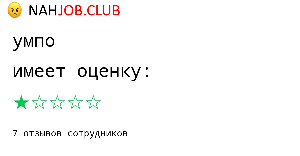 🔴 Мы собрали 7 отзывов бывших сотрудников про УМПО по городу Уфа с рейтингом 1 из 5 . Это данные изнутри про зарплату, коллектив, штрафы.