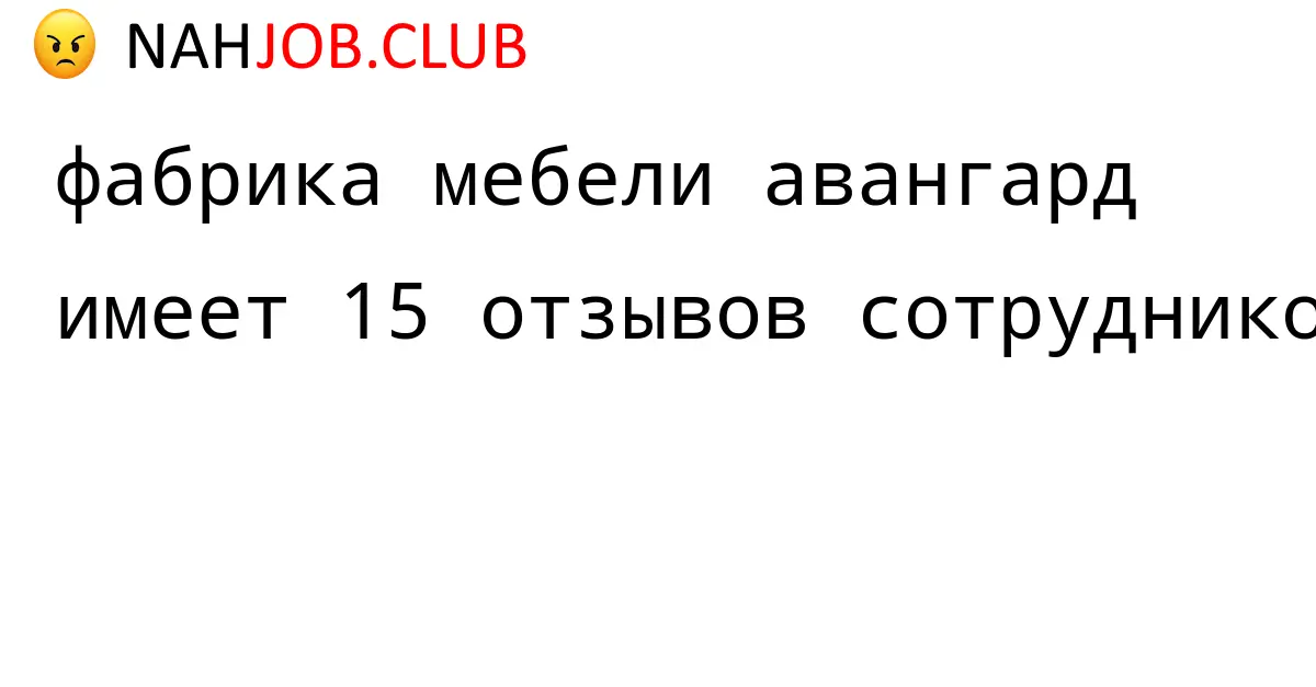 🔴 В базе Nahjob 15 отзывов и мнений бывших и действующих работников про ФАБРИКА МЕБЕЛИ АВАНГАРД. Это реальные отклики про зп, атмосферу, штрафы.