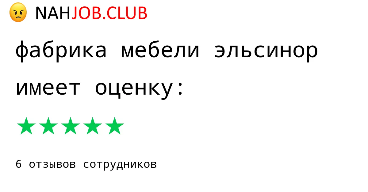 🔴 В списке 6 отзывов бывших работников про ФАБРИКА МЕБЕЛИ ЭЛЬСИНОР с рейтингом 5 из 5 . Это искренние мнения про атмосферу, доходы, штрафы, отпуска.