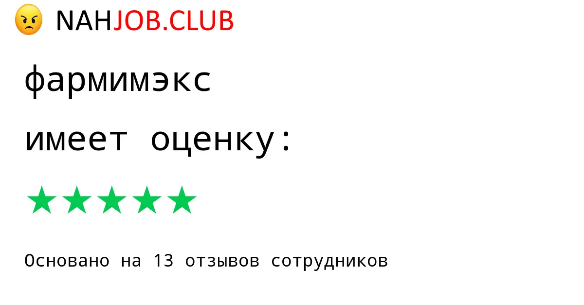 🔴 В списке 13 отзывов бывших работников про ФАРМИМЭКС по городу Москва с рейтингом 5 из 5 . Это искренние мнения про атмосферу, доходы, штрафы, отпуска.