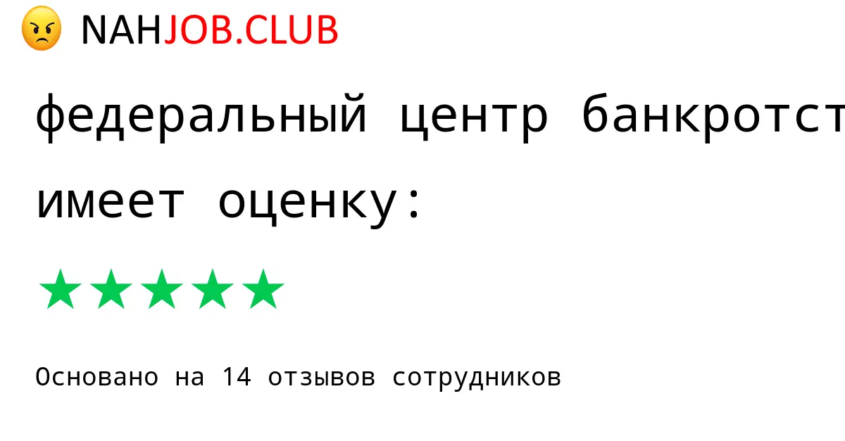 🔴 Изучаете вакансию Юрист компании ФЕДЕРАЛЬНЫЙ ЦЕНТР БАНКРОТСТВА? Почитайте 1 отзыв бывших сотрудников про работу по должности Юрист в ФЕДЕРАЛЬНЫЙ ЦЕНТР БАНКРОТСТВА