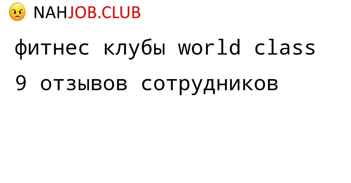 🔴 Мы собрали 1 отзыв бывших сотрудников про ФИТНЕС КЛУБЫ WORLD CLASS по городу Вельск . Это данные изнутри про зарплату, коллектив, штрафы.