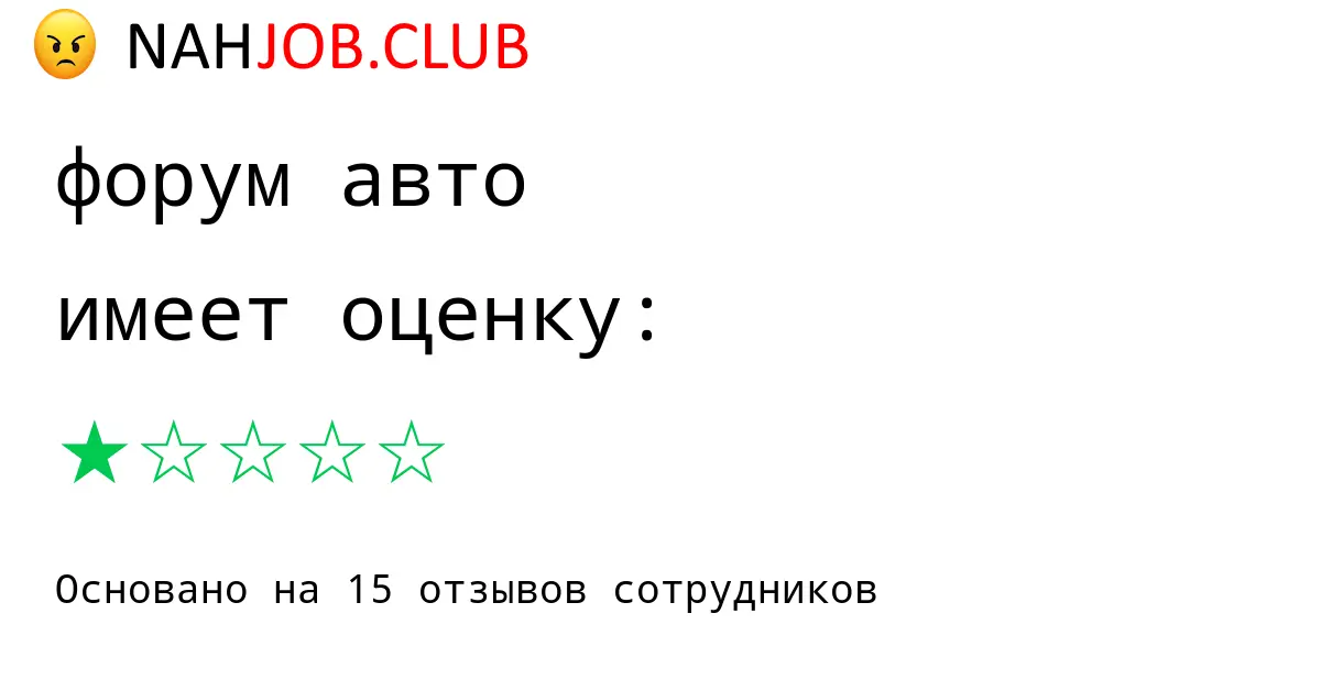 🔴 Изучаете вакансию Анонимный сотрудник компании ФОРУМ АВТО? Почитайте 1 отзыв бывших сотрудников про работу по должности Анонимный сотрудник в ФОРУМ АВТО