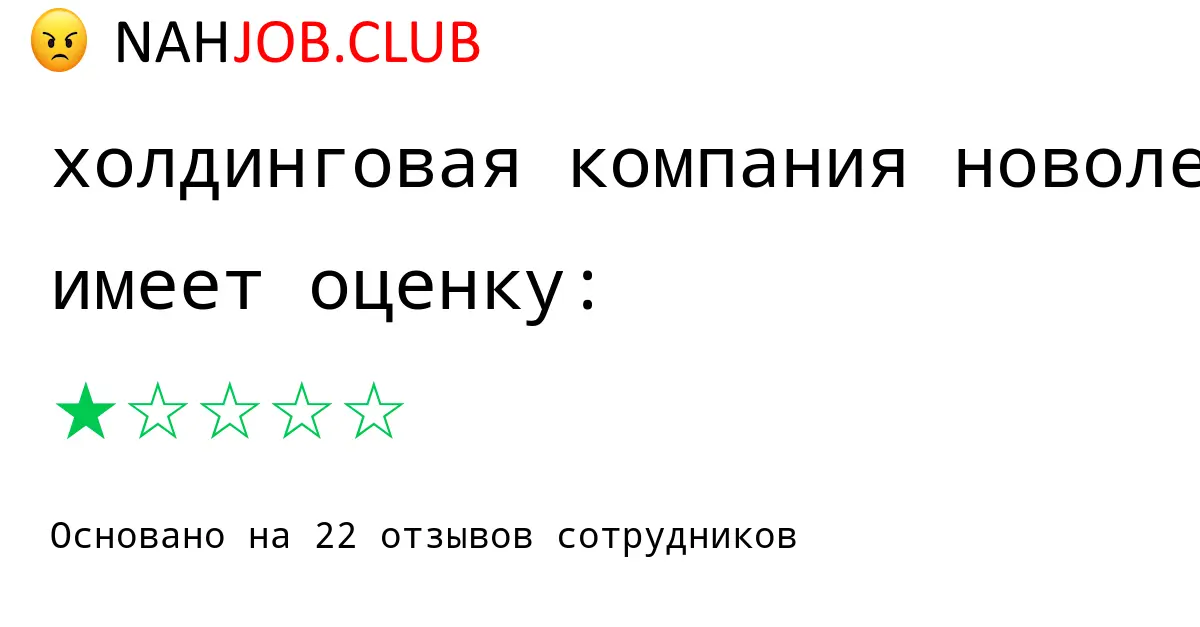 🔴 Мы собрали 1 отзыв бывших сотрудников про ХОЛДИНГОВАЯ КОМПАНИЯ НОВОЛЕКС по городу Воскресенск с рейтингом 1 из 5 . Это данные изнутри про зарплату, коллектив, штрафы.