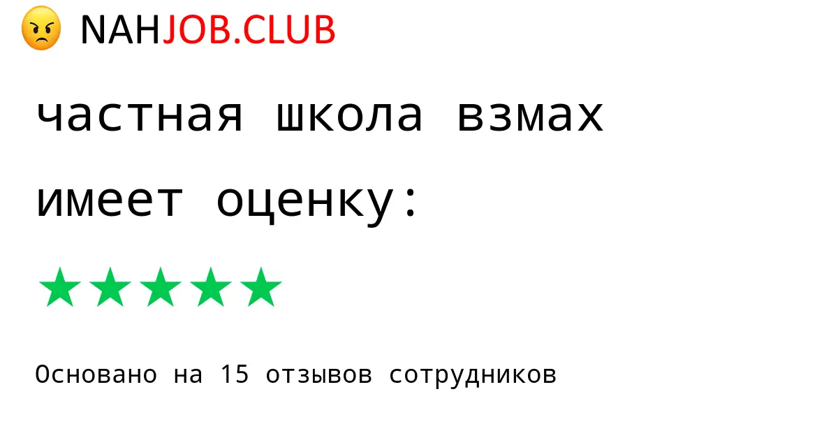 🔴 Изучаете вакансию учитель компании ЧАСТНАЯ ШКОЛА ВЗМАХ? Почитайте 1 отзыв бывших сотрудников про работу по должности Учитель в ЧАСТНАЯ ШКОЛА ВЗМАХ