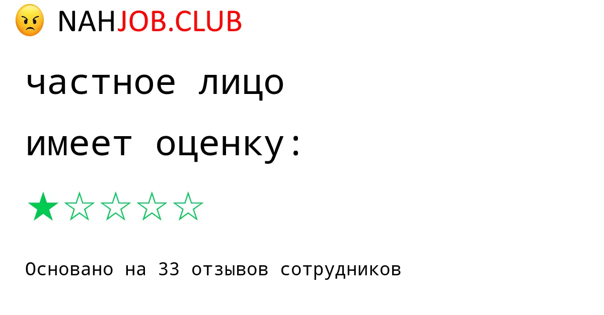 🔴 В базе Nahjob 1 отзыв и мнений бывших и действующих работников про ЧАСТНОЕ ЛИЦО по городу Краснодар с рейтингом 1 из 5 . Это реальные отклики про зп, атмосферу, штрафы.