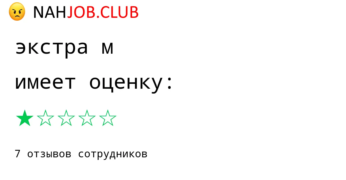 🔴 Изучаете вакансию руководящая должность компании ЭКСТРА М? Почитайте 1 отзыв бывших сотрудников про работу по должности Руководящая должность в ЭКСТРА М