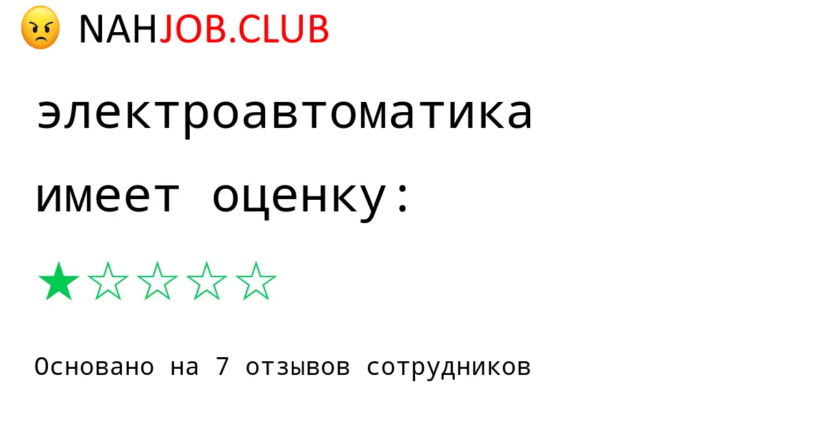 🔴 Изучаете вакансию рабочий компании ЭЛЕКТРОАВТОМАТИКА? Почитайте 1 отзыв бывших сотрудников про работу по должности Рабочий в ЭЛЕКТРОАВТОМАТИКА