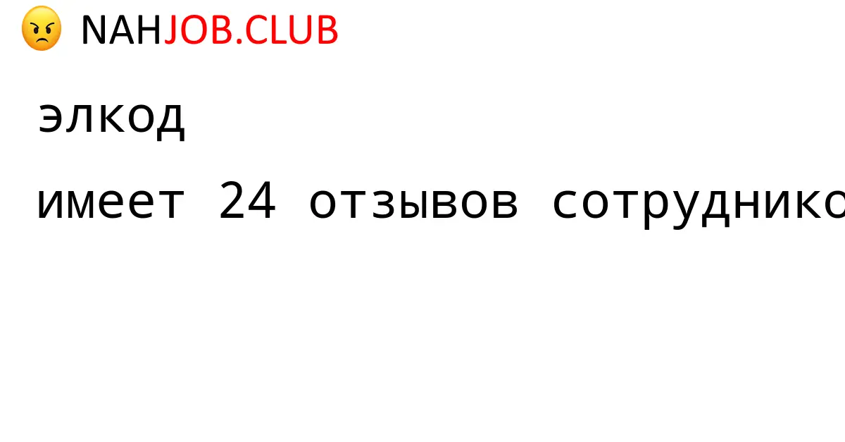🔴 В базе Nahjob 24 отзыва и мнений бывших и действующих работников про ЭЛКОД. Это реальные отклики про зп, атмосферу, штрафы.