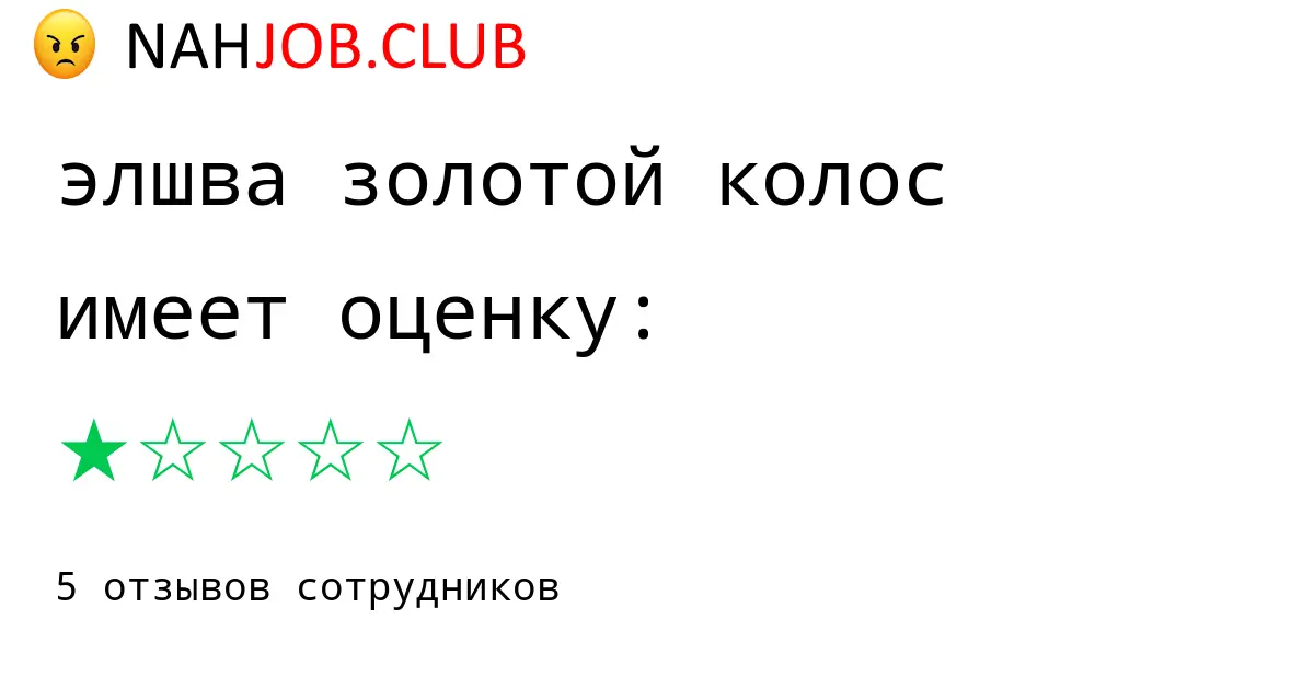 🔴 Изучаете вакансию производственный рабочий компании ЭЛШВА ЗОЛОТОЙ КОЛОС? Почитайте 1 отзыв бывших сотрудников про работу по должности Производственный рабочий в ЭЛШВА ЗОЛОТОЙ КОЛОС