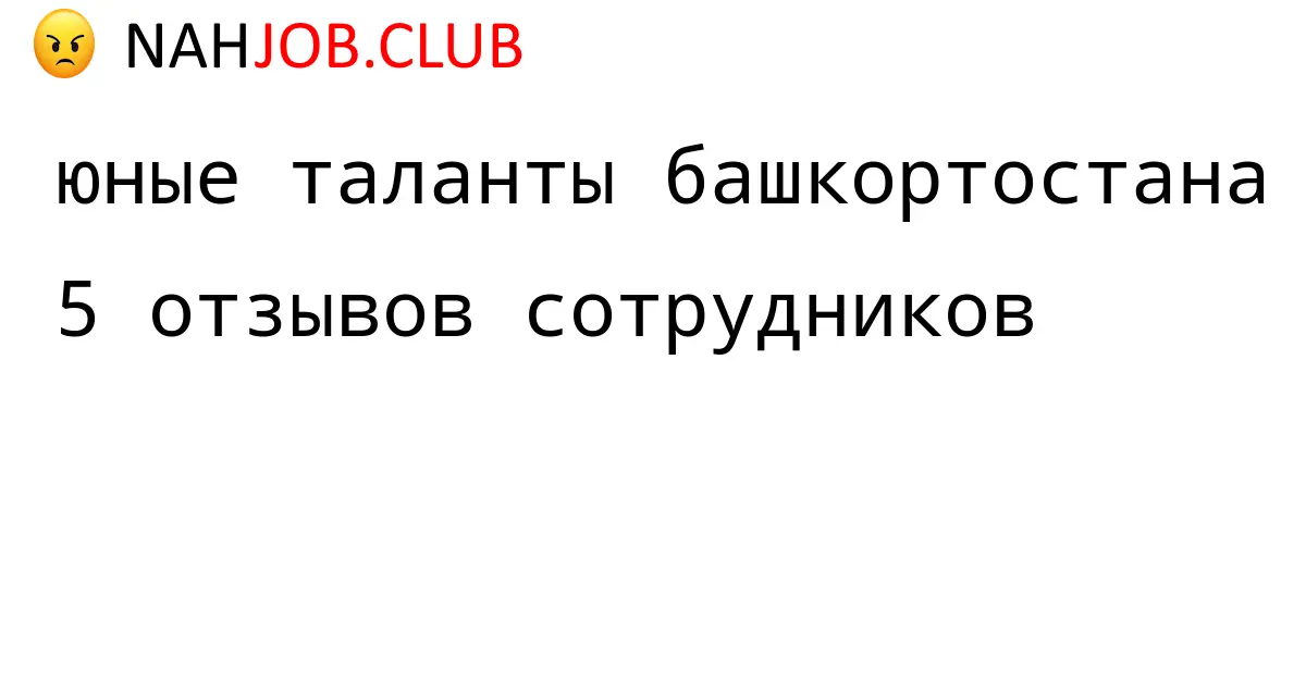 🔴 Мы собрали 5 отзывов бывших сотрудников про ЮНЫЕ ТАЛАНТЫ БАШКОРТОСТАНА по городу Уфа . Это данные изнутри про зарплату, коллектив, штрафы.