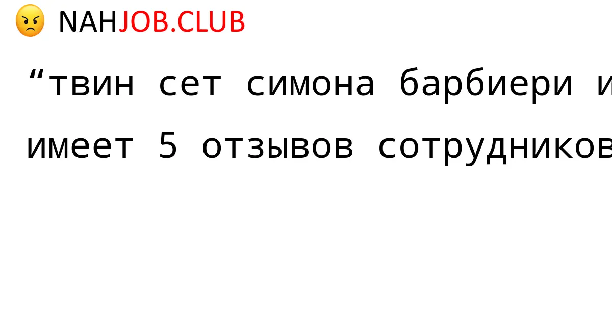 🔴 Мы собрали 5 отзывов бывших сотрудников про “ТВИН СЕТ СИМОНА БАРБИЕРИ ИСТ” по городу Москва . Это данные изнутри про зарплату, коллектив, штрафы.