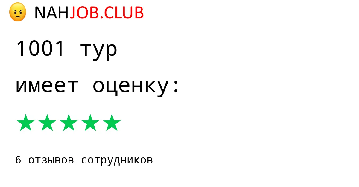 🔴 В списке 6 отзывов бывших работников про 1001 ТУР с рейтингом 5 из 5 . Это искренние мнения про атмосферу, доходы, штрафы, отпуска.