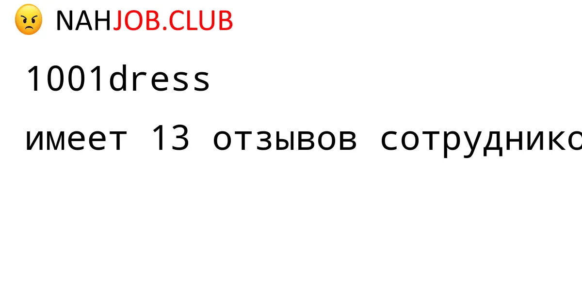 🔴 В базе Nahjob 13 отзывов и мнений бывших и действующих работников про 1001DRESS. Это реальные отклики про зп, атмосферу, штрафы.