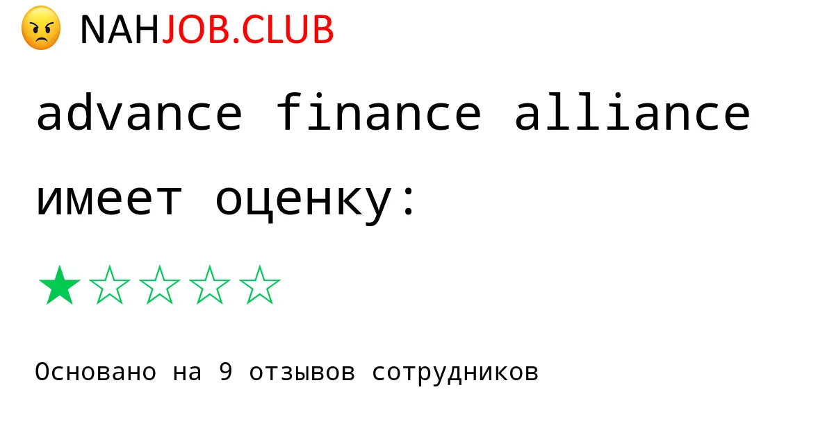🔴 Изучаете вакансию Анонимный сотрудник компании ADVANCE FINANCE ALLIANCE? Почитайте 1 отзыв бывших сотрудников про работу по должности Анонимный сотрудник в ADVANCE FINANCE ALLIANCE