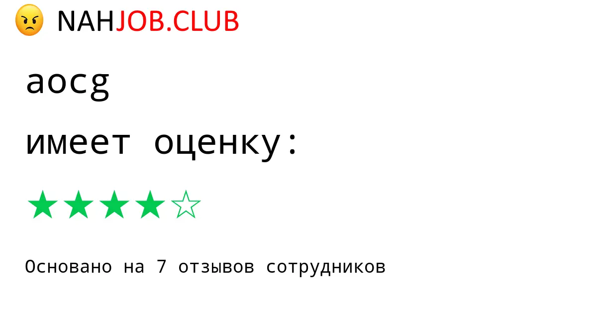 🔴 В базе Nahjob 7 отзывов и мнений бывших и действующих работников про AOCG с рейтингом 4 из 5 . Это реальные отклики про зп, атмосферу, штрафы.
