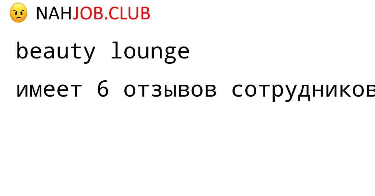 🔴 Мы собрали 1 отзыв бывших сотрудников про BEAUTY LOUNGE по городу Тюмень . Это данные изнутри про зарплату, коллектив, штрафы.