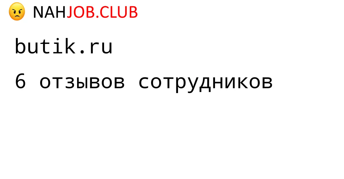 🔴 Мы собрали 1 отзыв бывших сотрудников про BUTIK.RU по городу Киреевск . Это данные изнутри про зарплату, коллектив, штрафы.