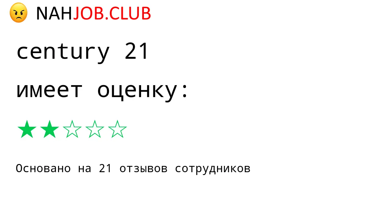 🔴 Мы собрали 13 отзывов бывших сотрудников про CENTURY 21 по городу Москва с рейтингом 1 из 5 . Это данные изнутри про зарплату, коллектив, штрафы.