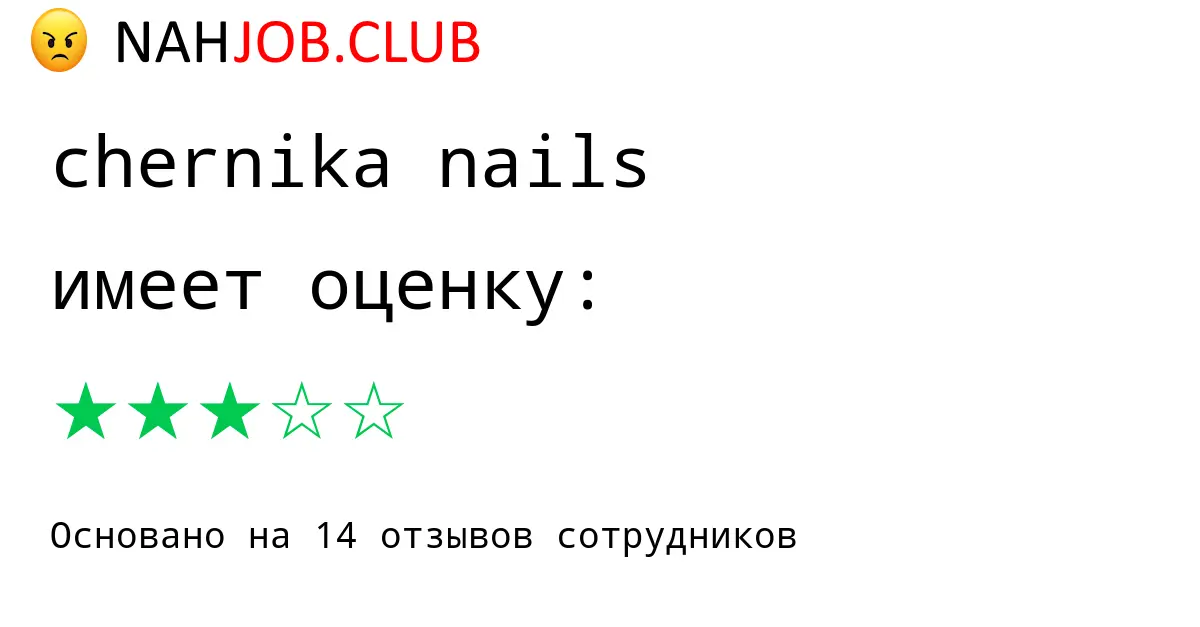 🔴 Изучаете вакансию мастер маникюра компании CHERNIKA NAILS? Почитайте 6 отзывов бывших сотрудников про работу по должности Мастер маникюра в CHERNIKA NAILS