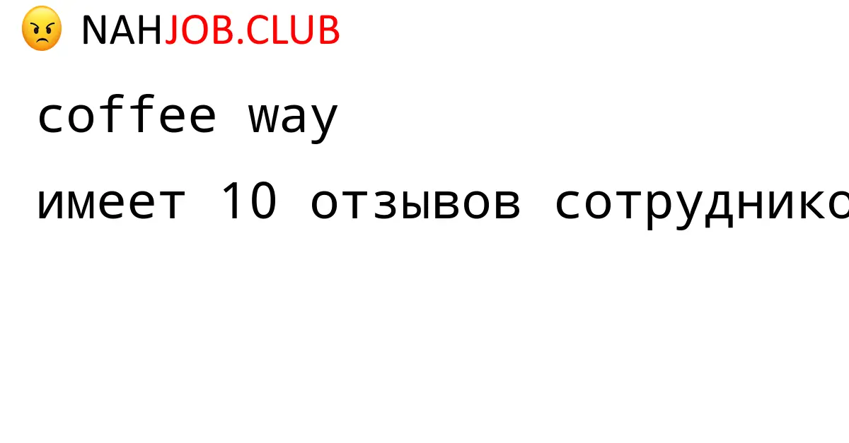 🔴 В базе Nahjob 10 отзывов и мнений бывших и действующих работников про COFFEE WAY. Это реальные отклики про зп, атмосферу, штрафы.