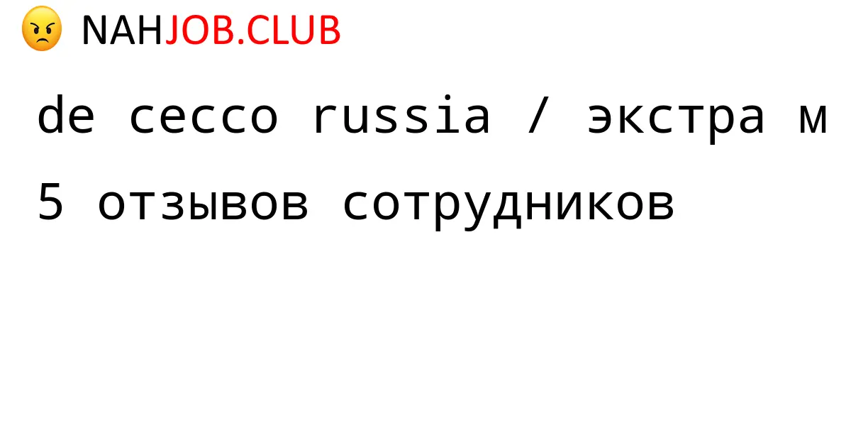 🔴 Мы собрали 1 отзыв бывших сотрудников про DE CECCO RUSSIA / ЭКСТРА М по городу Козьмодемьянск . Это данные изнутри про зарплату, коллектив, штрафы.