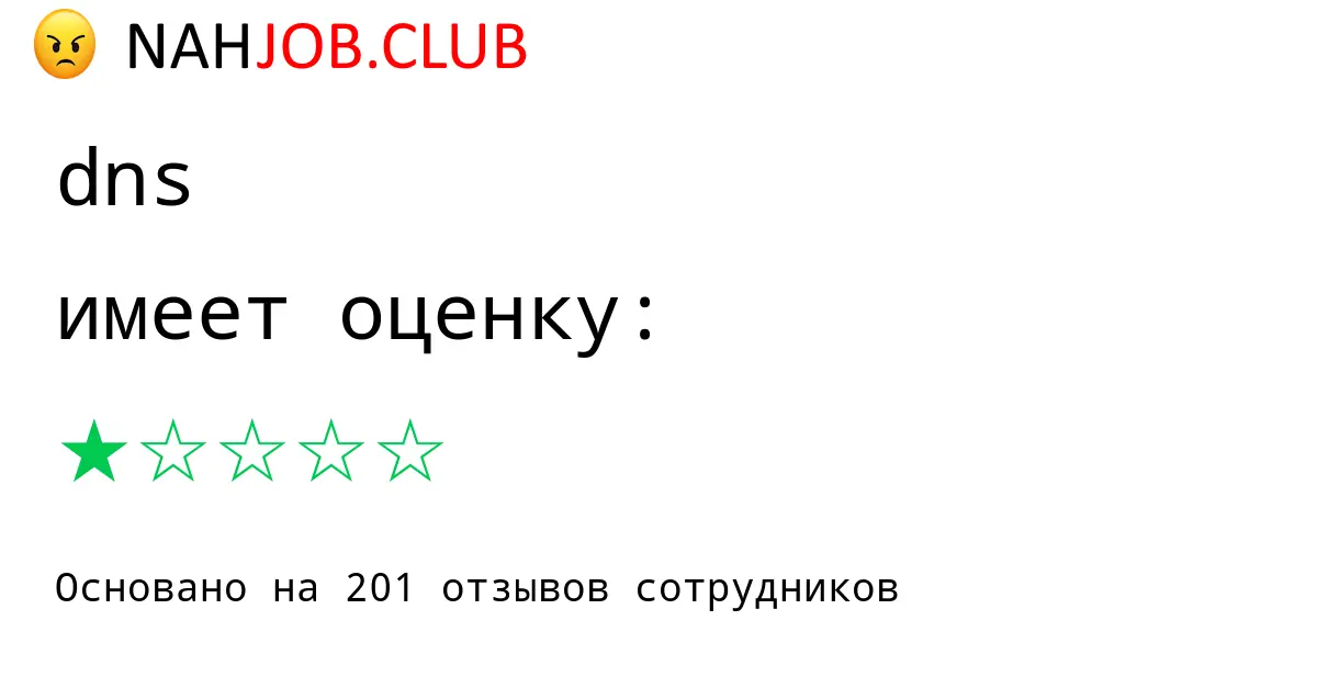 🔴 В списке 201 отзыв бывших работников про DNS с рейтингом 1.3 из 5 . Это искренние мнения про атмосферу, доходы, штрафы, отпуска.
