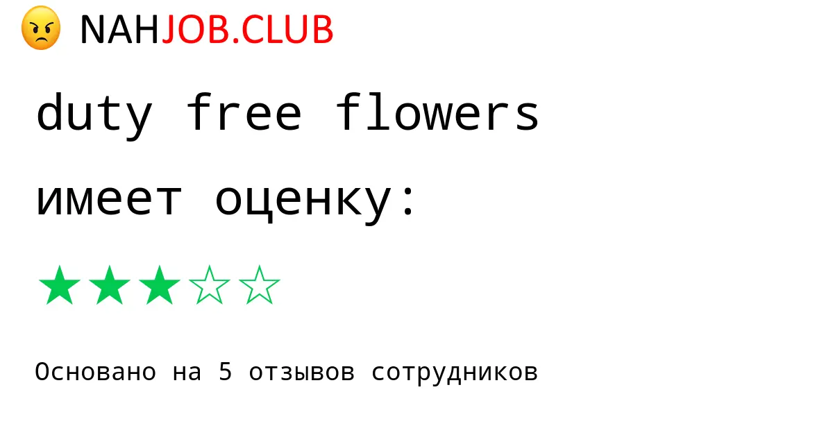 🔴 Мы собрали 5 отзывов бывших сотрудников про DUTY FREE FLOWERS с рейтингом 3 из 5 . Это данные изнутри про зарплату, коллектив, штрафы.