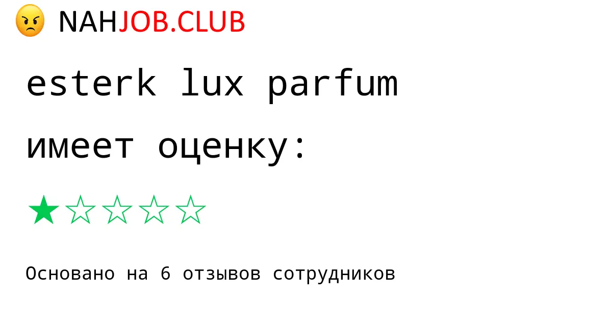 🔴 Мы собрали 1 отзыв бывших сотрудников про ESTERK LUX PARFUM по городу Рузаевка . Это данные изнутри про зарплату, коллектив, штрафы.
