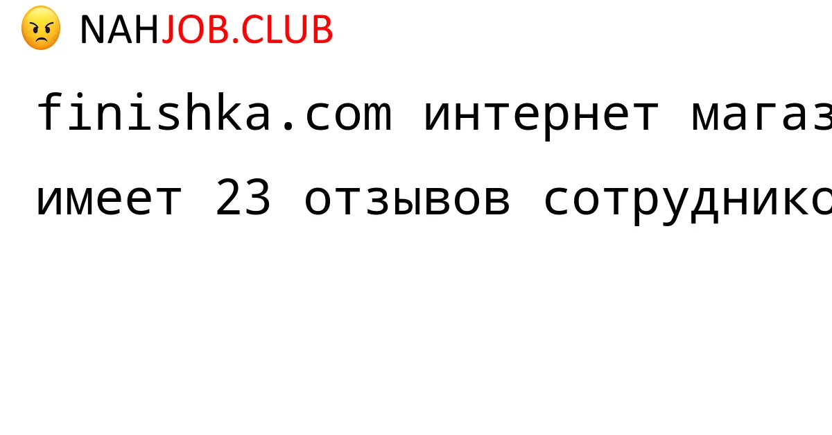 🔴 В базе Nahjob 23 отзыва и мнений бывших и действующих работников про FINISHKA.COM ИНТЕРНЕТ МАГАЗИН. Это реальные отклики про зп, атмосферу, штрафы.