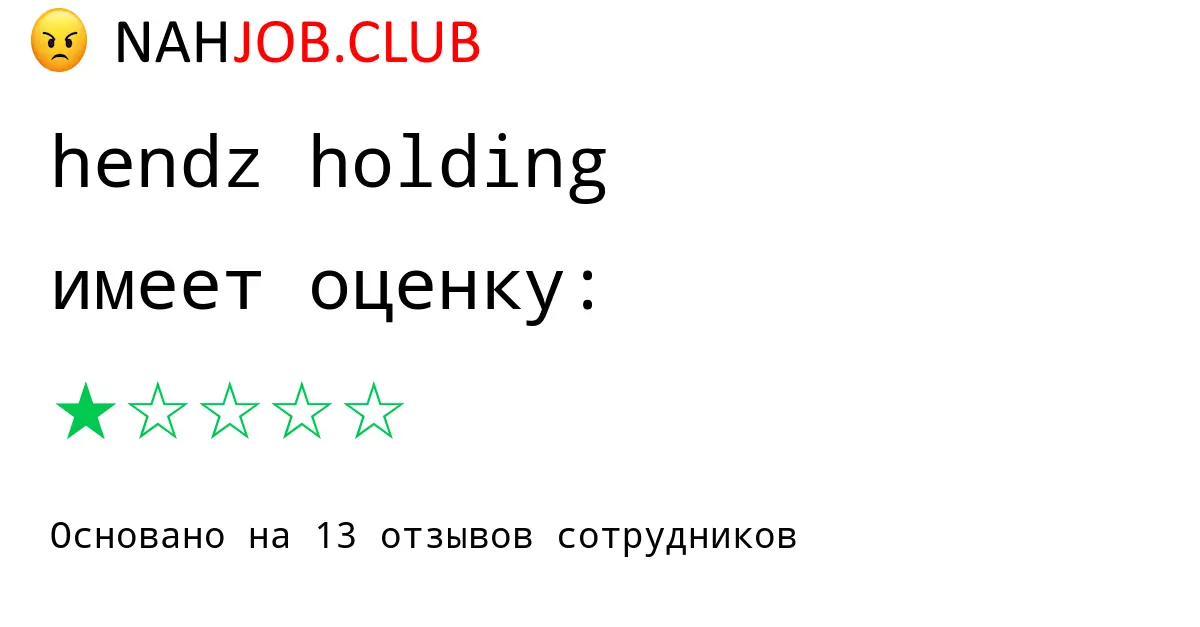 🔴 Мы собрали 1 отзыв бывших сотрудников про HENDZ HOLDING по городу Ростов-на-Дону . Это данные изнутри про зарплату, коллектив, штрафы.