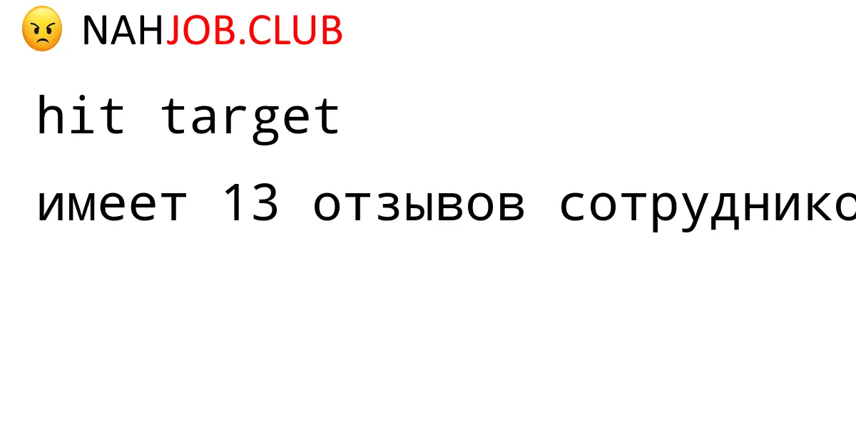 🔴 В базе Nahjob 12 отзывов и мнений бывших и действующих работников про HIT TARGET по городу Санкт-Петербург . Это реальные отклики про зп, атмосферу, штрафы.