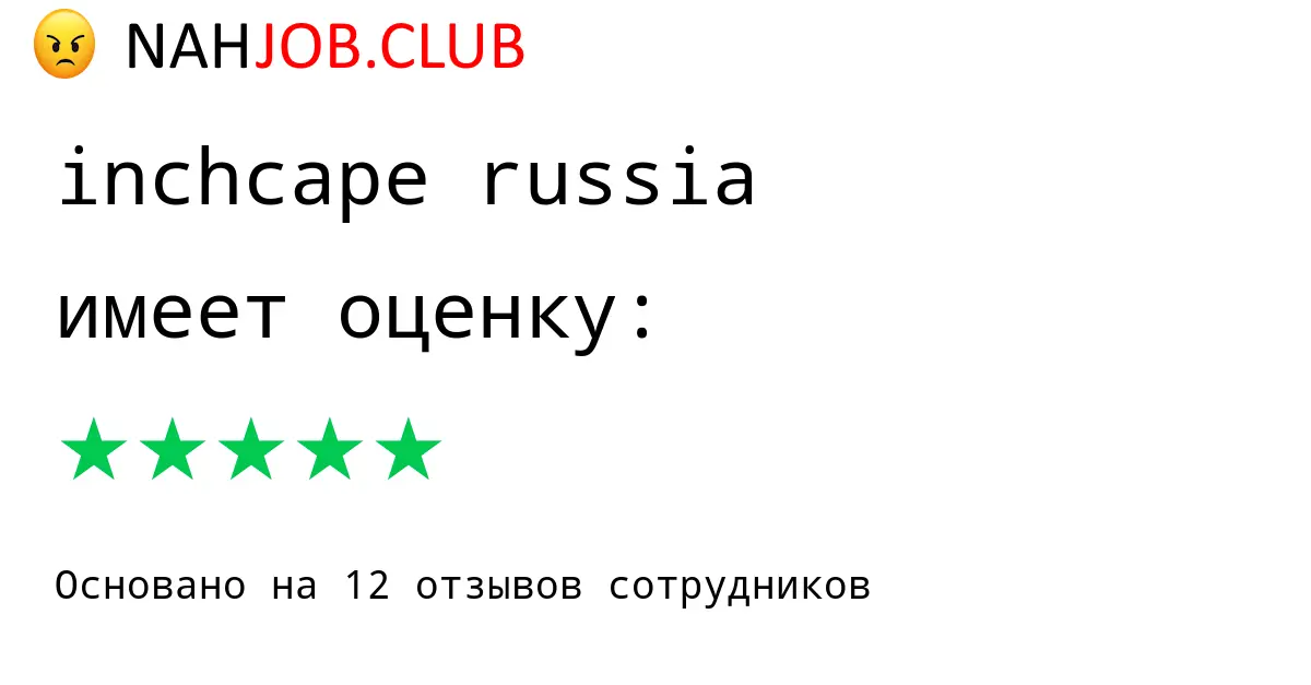 🔴 Мы собрали 1 отзыв бывших сотрудников про INCHCAPE RUSSIA по городу Минск с рейтингом 5 из 5 . Это данные изнутри про зарплату, коллектив, штрафы.