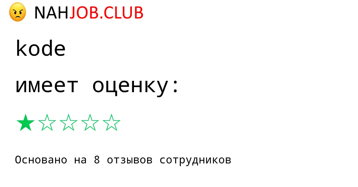 🔴 В списке 8 отзывов бывших работников про KODE с рейтингом 1 из 5 . Это искренние мнения про атмосферу, доходы, штрафы, отпуска.