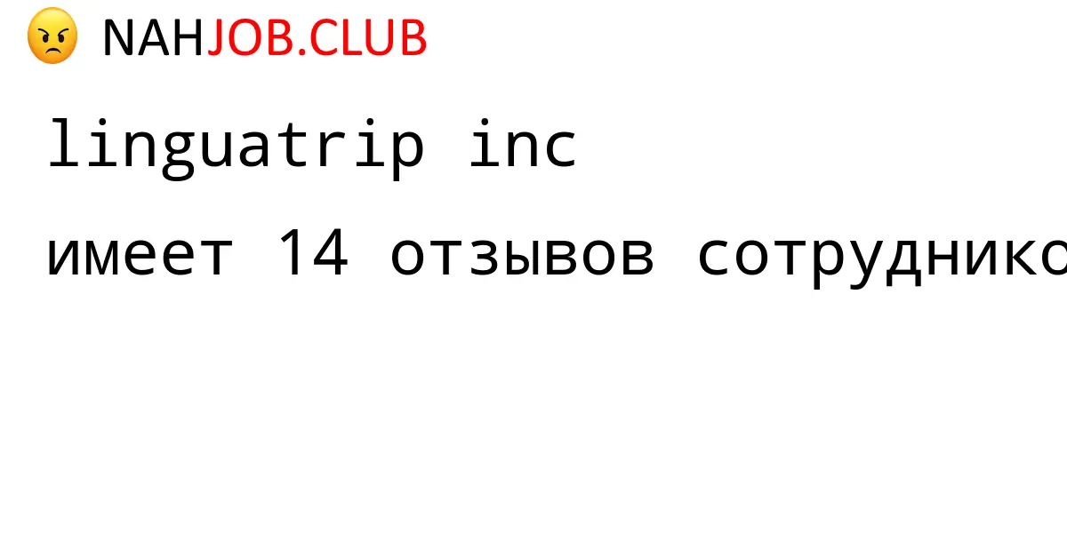 🔴 Изучаете вакансию Операционный директор компании LINGUATRIP INC? Почитайте 1 отзыв бывших сотрудников про работу по должности Операционный директор в LINGUATRIP INC