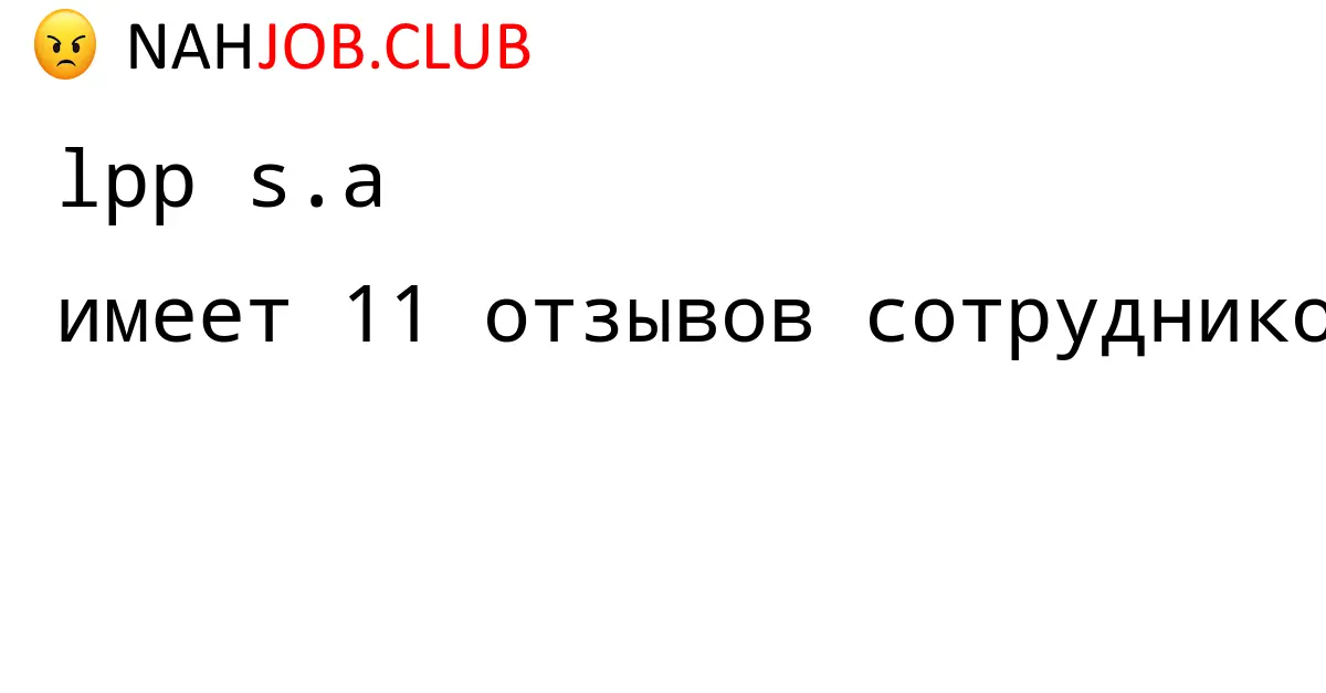 🔴 В базе Nahjob 2 отзыва и мнений бывших и действующих работников про LPP S.A по городу Санкт-Петербург . Это реальные отклики про зп, атмосферу, штрафы.
