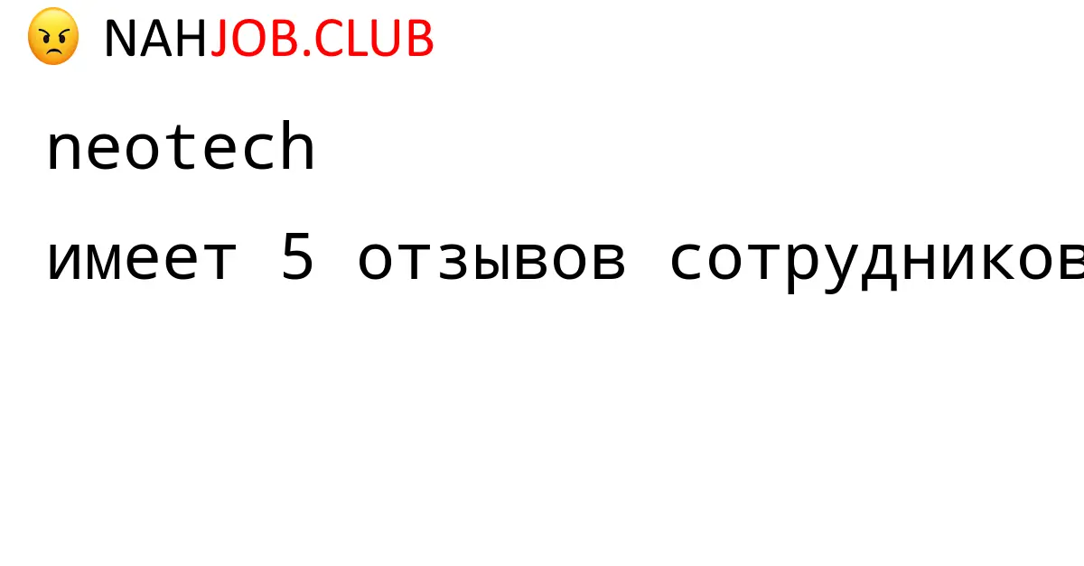🔴 В базе Nahjob 5 отзывов и мнений бывших и действующих работников про NEOTECH. Это реальные отклики про зп, атмосферу, штрафы.