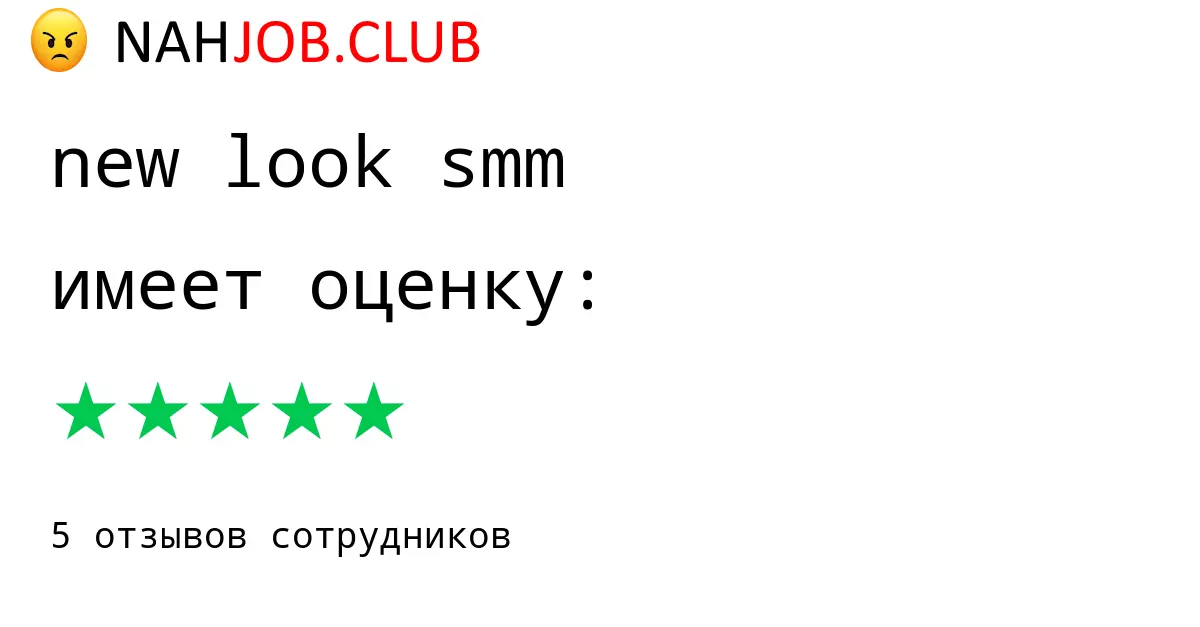 🔴 В базе Nahjob 5 отзывов и мнений бывших и действующих работников про NEW LOOK SMM с рейтингом 5 из 5 . Это реальные отклики про зп, атмосферу, штрафы.