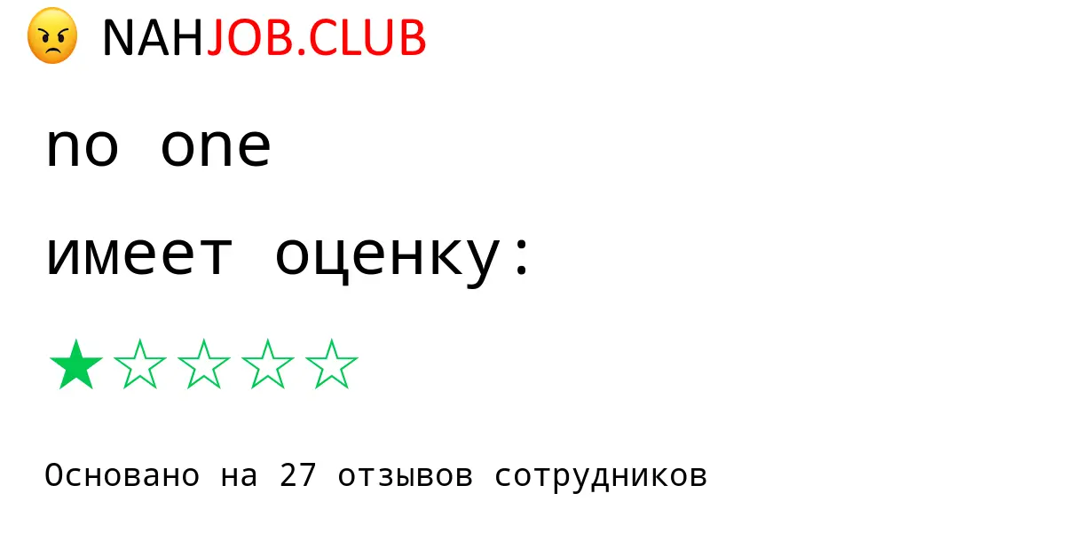 🔴 В базе Nahjob 27 отзывов и мнений бывших и действующих работников про NO ONE с рейтингом 1 из 5 . Это реальные отклики про зп, атмосферу, штрафы.
