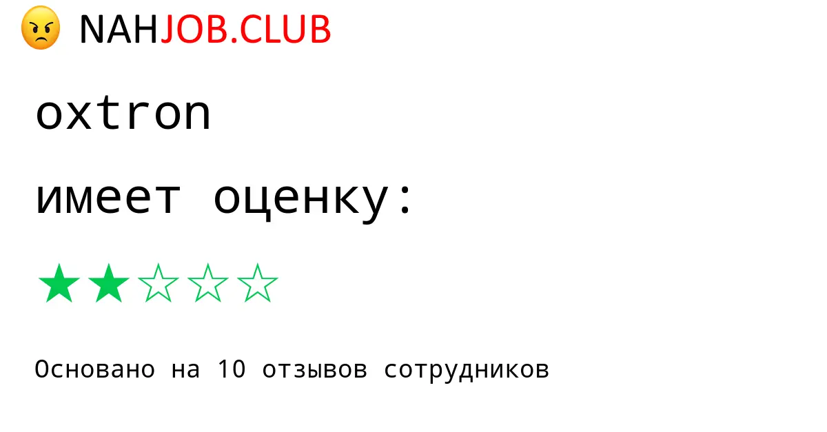 🔴 Изучаете вакансию сотрудник компании OXTRON? Почитайте 1 отзыв бывших сотрудников про работу по должности Сотрудник в OXTRON