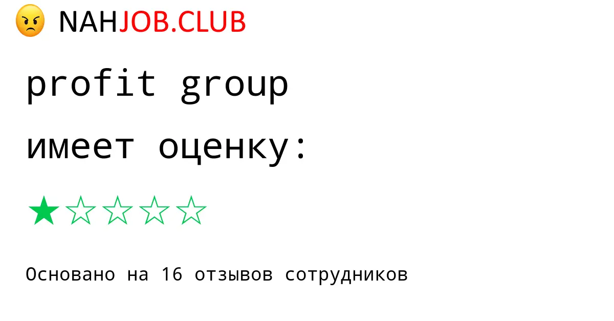 🔴 В списке 16 отзывов бывших работников про PROFIT GROUP с рейтингом 1 из 5 . Это искренние мнения про атмосферу, доходы, штрафы, отпуска.