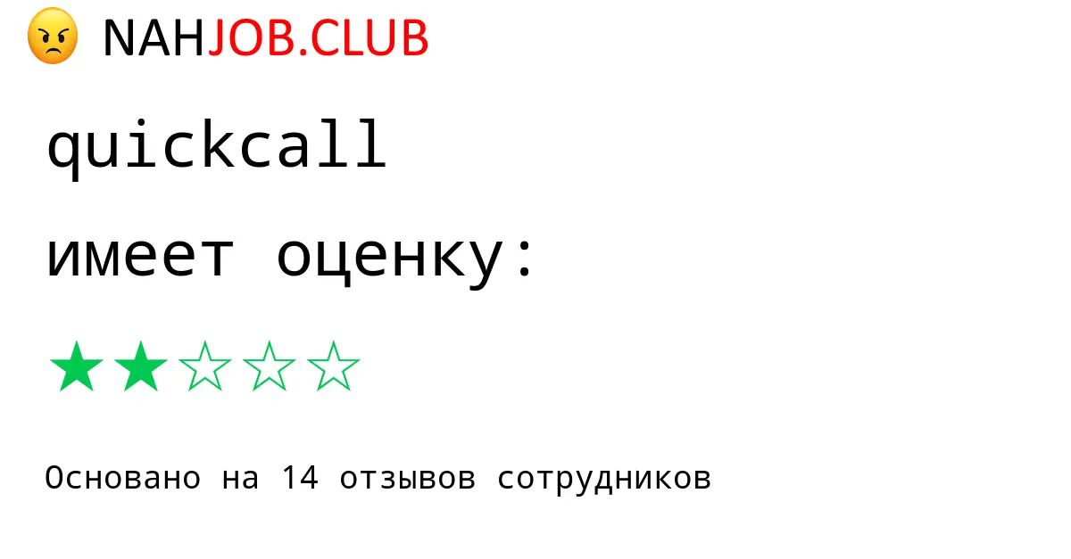 🔴 Изучаете вакансию менеджер по продажам компании QUICKCALL? Почитайте 1 отзыв бывших сотрудников про работу по должности Менеджер по продажам в QUICKCALL