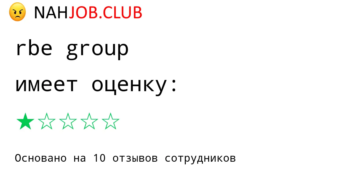 🔴 В базе Nahjob 10 отзывов и мнений бывших и действующих работников про RBE GROUP с рейтингом 1 из 5 . Это реальные отклики про зп, атмосферу, штрафы.