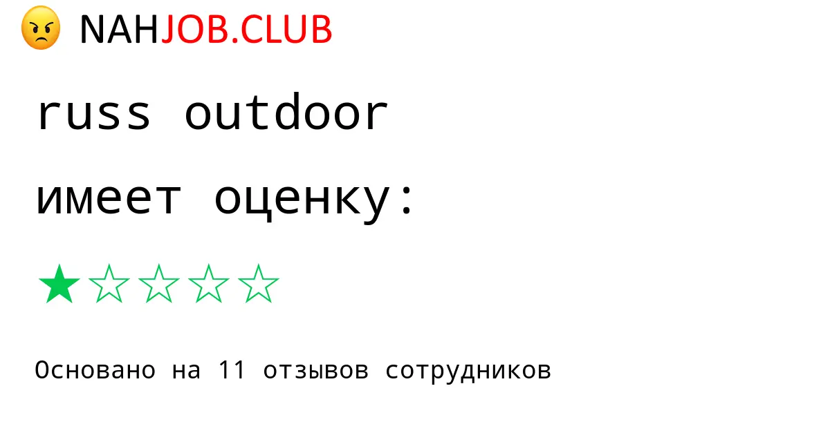 🔴 Мы собрали 11 отзывов бывших сотрудников про RUSS OUTDOOR с рейтингом 1 из 5 . Это данные изнутри про зарплату, коллектив, штрафы.