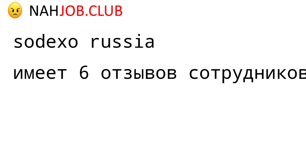 🔴 Изучаете вакансию Горничная компании SODEXO RUSSIA? Почитайте 1 отзыв бывших сотрудников про работу по должности Горничная в SODEXO RUSSIA